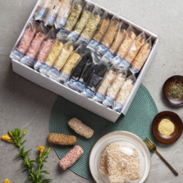 - 솔잎, 파프리카, 단호박, 백년초, 참깨, 흑임자, 찹쌀 등 다양 한과모둠세트
